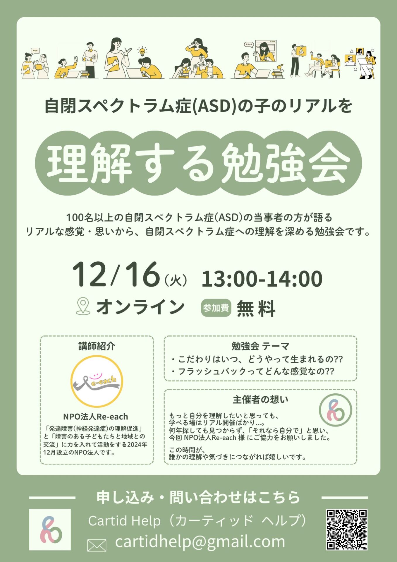 自閉スペクトラム症(ASD)の理解を深める講演会は、NPO法人Re-each代表の亀尾が約40分で話をしました。