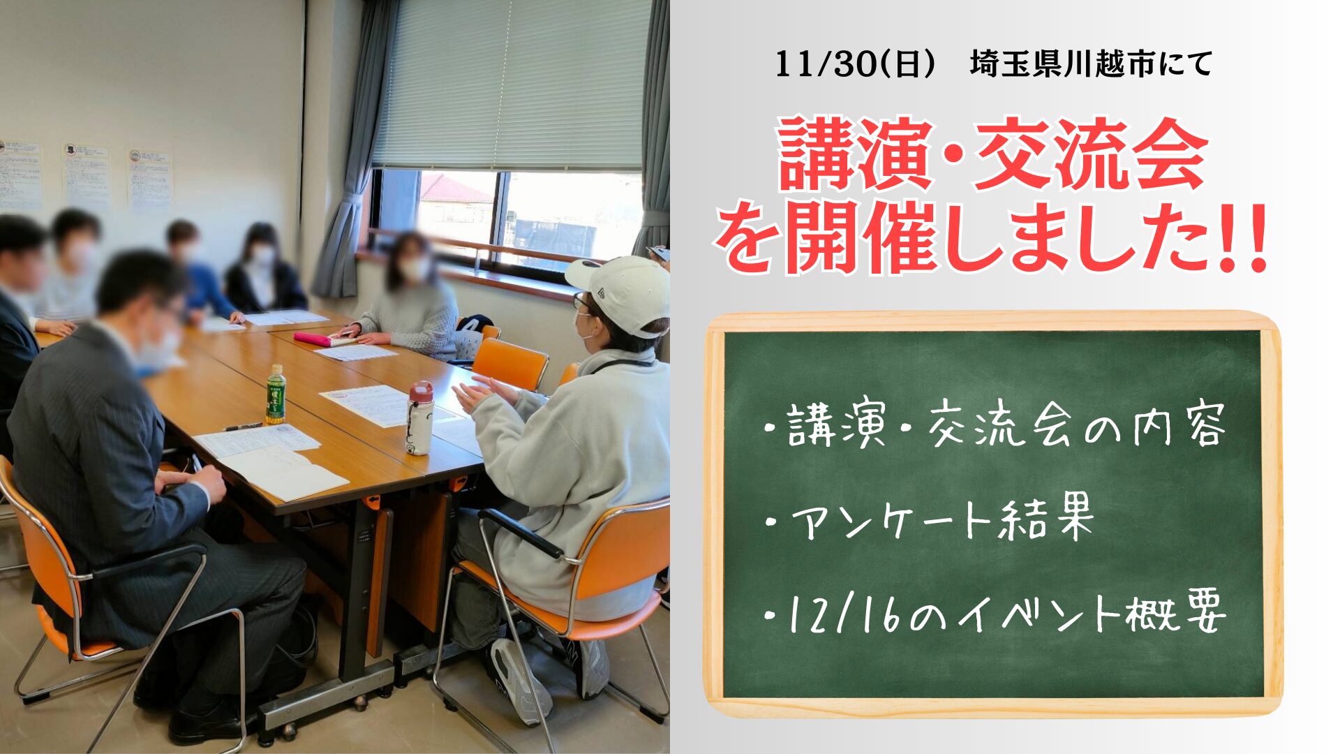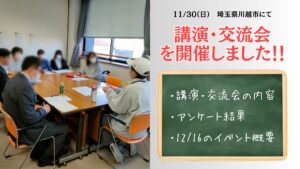11/30(日)、埼玉県川越市にある川越西文化会館にて、【自閉スペクトラム症(ASD)の理解を深める講演・交流会】を行いました。